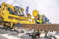 3月18日,在位于云南省昆明市嵩明县的渝昆高铁施工现场,第一对500米长钢轨稳稳落在无砟轨道上,渝昆高铁云南段正式开始铺轨。 渝昆高铁是我国“八纵八横”高铁网京昆通道的重要组成部分,线路