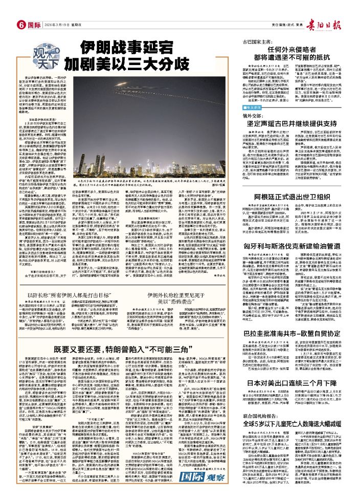 美以伊战事仍在持续。一同对伊朗发动军事打击的美国和以色列之间,分歧日益明显。美国有线电视新闻网17日发表对美国国防部中东政策前助理部长帮办、美国前驻以色列大使丹尼尔·夏皮罗的采访内容,显示美以