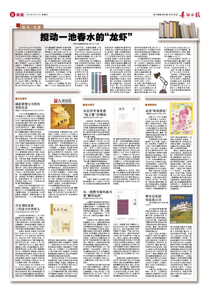 《书城》2026年3月号,月刊 上海图书馆陈颖馆员借助馆内丰富的典籍资源,对中国近两千年来的翻译运动做了一次考察清理,其成果结集为《译海寻珠》出版。学者李天纲先生对翻译运动一“事”、上海