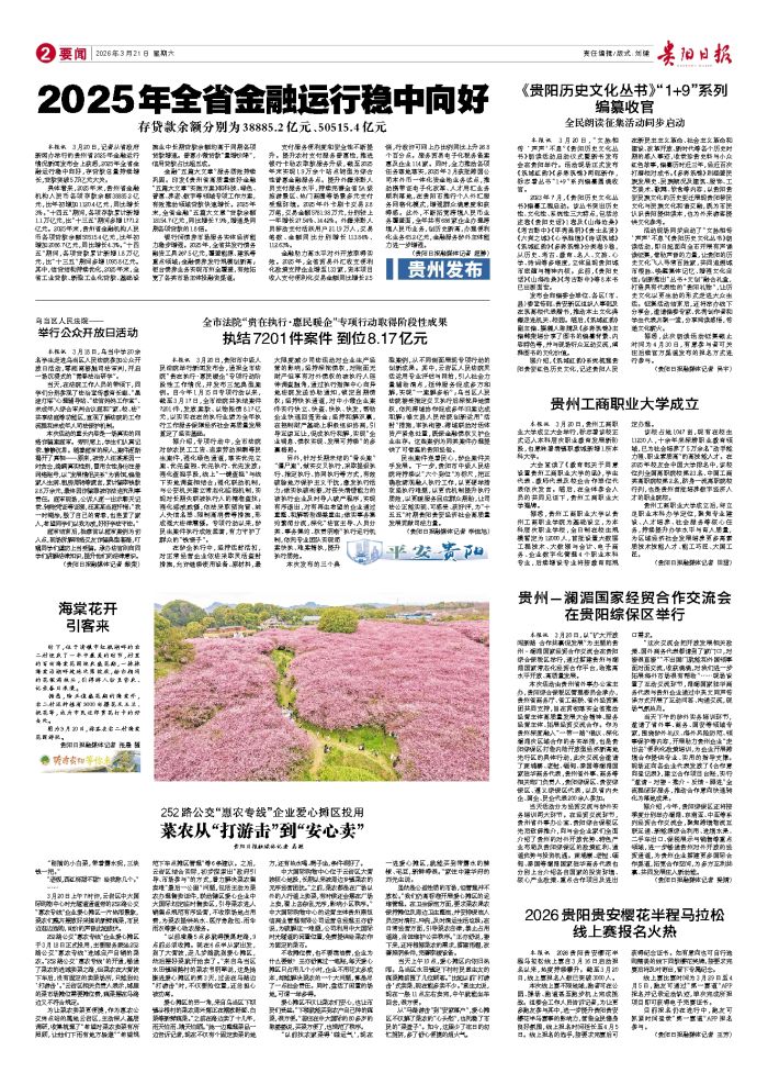 本报讯 3月20日,记者从省政府新闻办举行的贵州省2025年金融运行情况新闻发布会上获悉,2025年全省金融运行稳中向好,存贷款总量持续增长,贷款突破5万亿元大关。 具体看来,2025