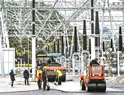 图为工人在500千伏马场变电站项目开展土建收尾工作。
