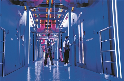 工作人员在中国移动(贵阳)智算中心机房巡视。 贵阳日报融媒体记者 石照昌 摄
