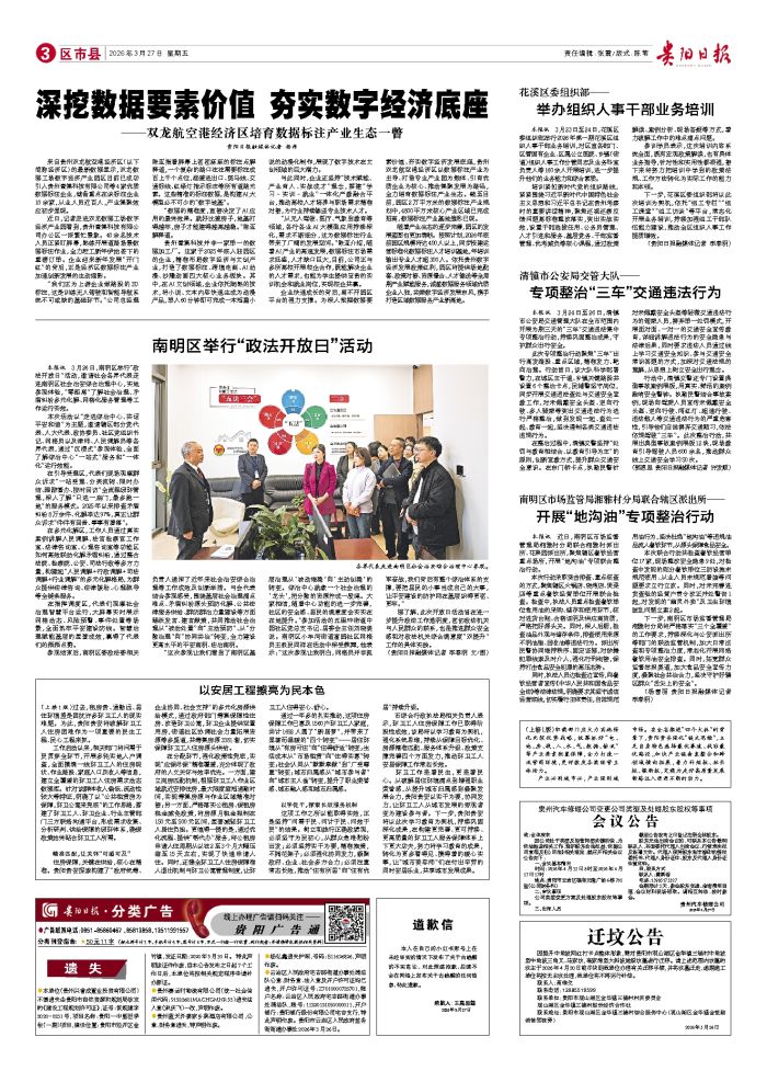 本报讯 3月26日,南明区举行“政法开放日”活动,邀请社会各界代表走进南明区社会治安综合治理中心,实地参观体验,“零距离”了解社会治理、矛盾纠纷多元化解、网格化服务管理等工作运行实效。