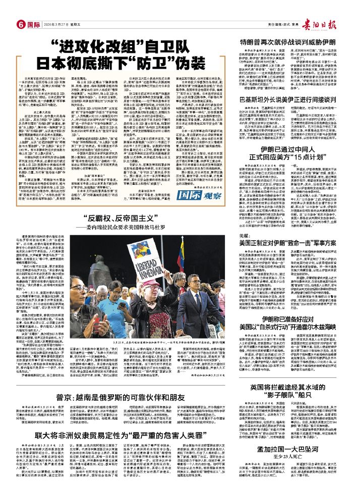 新华社德黑兰3月26日电 伊朗塔斯尼姆通讯社26日援引知情人士的话报道说,伊朗已正式回应美国提出的包含15点内容的停火协议。 报道说,伊朗的回应已于25日晚通过斡旋的国家正式发出,伊朗