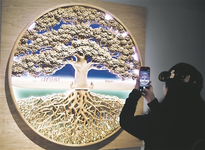 观众在欣赏木雕展品《生万物》。 新华/传真