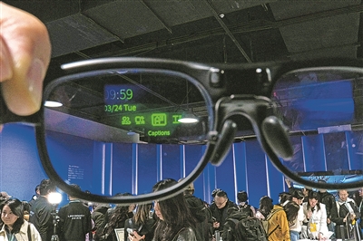 2026年3月24日在中关村论坛年会新闻中心内拍摄的一款AR翻译眼镜。