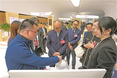 2026年3月25日,在中关村国际创新中心,嘉宾在了解“北脑一号”智能脑机系统。