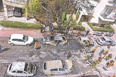 据伊朗伊斯兰共和国广播电视台3月31日报道,伊朗伊斯兰革命卫队海军当天表示,对美以多个目标实施打击,并重申完全控制霍尔木兹海峡。图为3月31日,在以色列中部城市佩塔提克瓦,应急反应人员在导弹袭击现场开展工作。 新华/传真