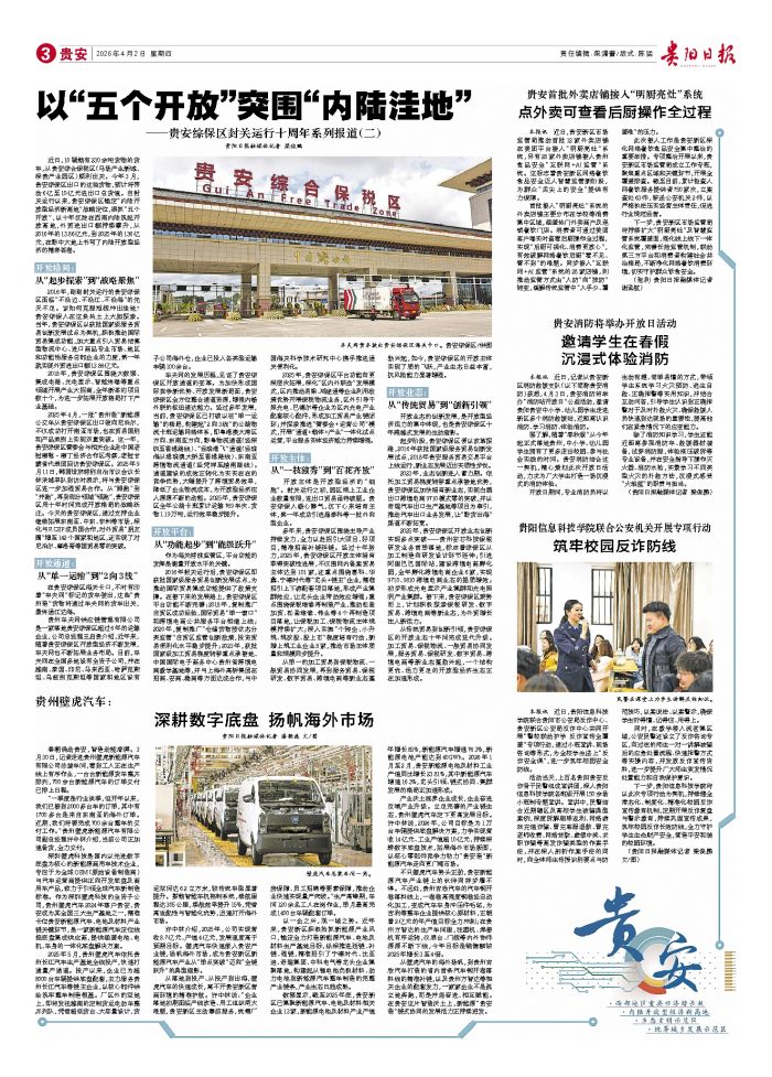 贵阳日报融媒体记者 梁俊鹏 近日,10辆载有230余吨货物的货车,从贵安综合保税区(马场产业新城、深贵产业园区)顺利出关。今年3月,贵安综保区出口的这些货物,预计将带动6亿至10亿元进出