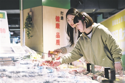 ▲市民在南明区南浦路合力超市选购新鲜果蔬。