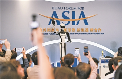 在博鳌亚洲论坛“人形机器人的进阶与飞跃”分论坛上拍摄的机器人(2026年3月25日摄)。 新华/传真