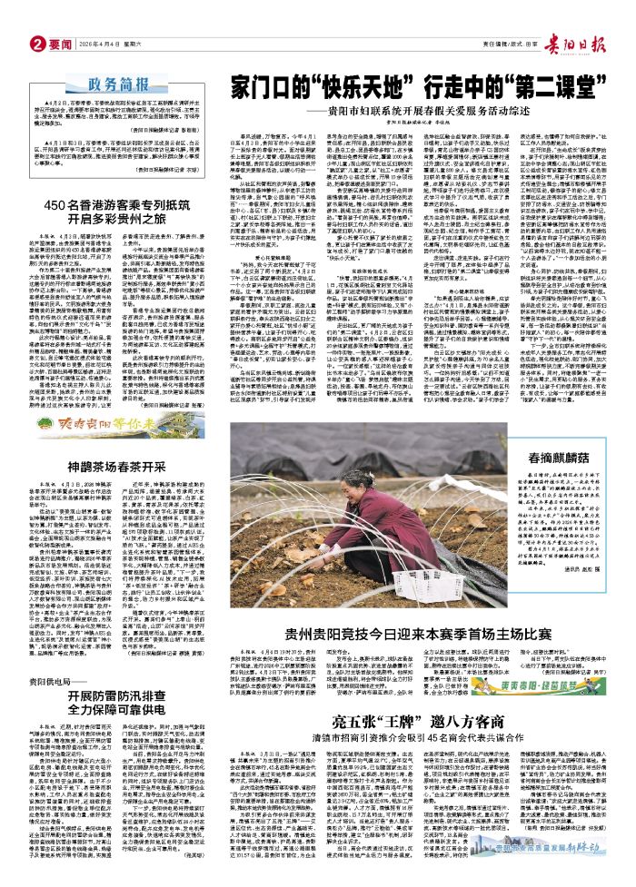 贵阳日报融媒体记者 李佳旭 春风送暖,万物复苏。今年4月1日至4月3日,贵阳市的中小学生迎来了一段珍贵的春假时光。面对假期家长上班孩子无人看管、假期生活单调枯燥等难题,贵阳市各级妇联组织