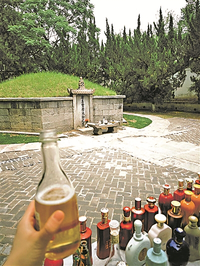 鲜花、美酒和写给古人的信件,成了最常见的供品。以李白为例,大家都知道他爱饮酒,常在长安酒肆与同好对饮,醉酒而归。所以在他的墓碑前,白酒、红酒、啤酒、清酒一应俱全,连年轻人偏爱的果酒也被摆上。从酒的小样(迷你酒)到大酒坛子,琳琅满目,颇有要办“酒类博览会”的架势。