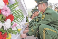 清明时节,贵阳各地干部群众以多种形式开展祭扫活动,缅怀英烈、寄托哀思、铭记历史。 图为4月3日,武警贵阳支队官兵在解放贵州革命烈士纪念碑前敬献鲜花。 贵阳日报融媒体记者 衣琼 摄