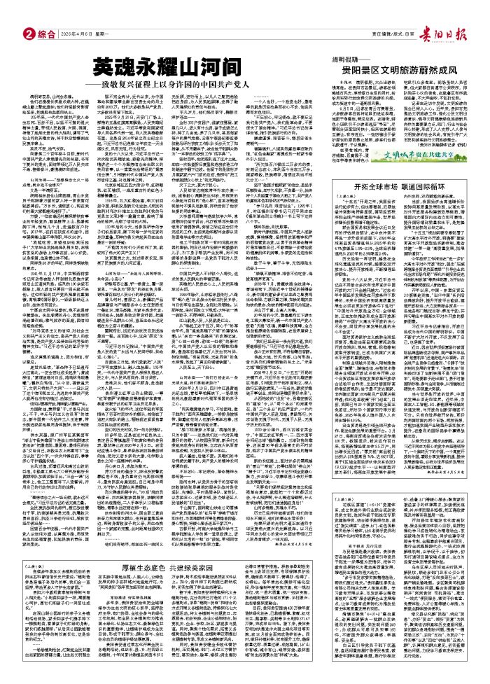 清明寄哀思,山河念忠魂。 他们在漫漫长夜里点燃火种,在巍峨山巅上擎起旗帜;他们将坚毅背影留给至亲,把满腔热血洒向热土。 105年来,一代代中国共产党人舍生忘死、百折不回,以坚不可摧