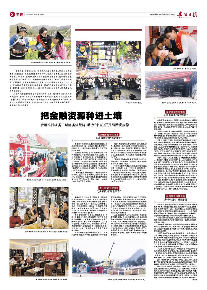 一年春作首,万事行为先。“十五五”开局的春日里,贵州大地万物复苏、生机勃发,既是农耕播种的好时节,也是产业耕耘、民生赋能的黄金期。“十五五”规划擘画赋能实体经济的宏伟蓝图,贵阳银行积极响应号召