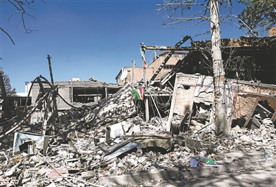 据《德黑兰时报》等多家伊朗媒体6日报道,美国和以色列对伊朗谢里夫理工大学实施了空袭。图为4月7日,在伊朗德黑兰的谢里夫理工大学,伊朗国旗挂在美以空袭后的废墟中。 新华/传真