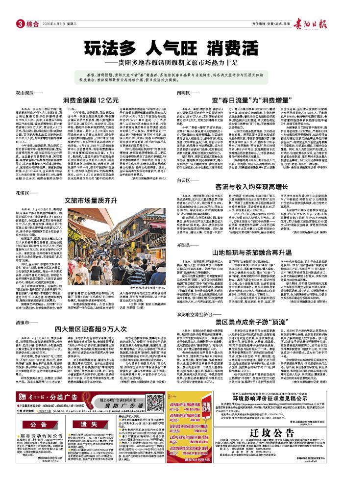 春假、清明假期,贵阳文旅市场“春”意盎然,多地依托春日盛景与当地特色,将各类文旅活动与沉浸式体验深度融合,推动新场景新业态持续升温,假日经济活力满满。