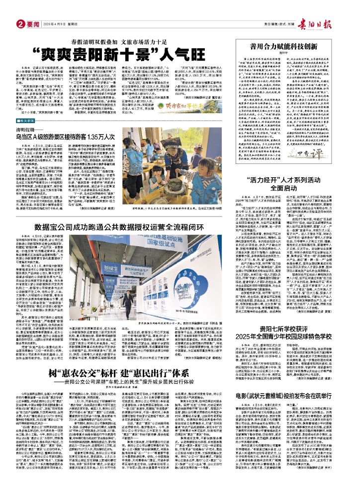 本报讯 记者从市文旅局获悉,在中小学春假与清明假期叠加的小长假里,贵阳文旅市场活力十足,“爽爽贵阳新十景”备受游客青睐,成为出行热门之选。 “爽爽贵阳新十景”包含“甲秀文昌、心学高地、