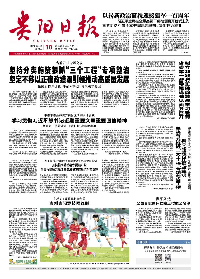 本报讯 4月9日,市委常委会和贵安新区党工委召开会议,深入学习贯彻习近平总书记近期重要文章、重要回信精神,落实省近期会议部署,调度贵阳贵安树立和践行正确政绩观学习教育工作。省委常委、市委书记