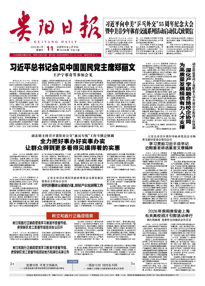 本报讯 4月10日,2026年贵阳贵安赴上海有关高校招才引智活动在上海大学举行。贵阳市政协党组书记、主席龙章怀主持召开在沪高校毕业生引筑行动座谈会,上海大学党委副书记、副校长胡大伟出席并致辞