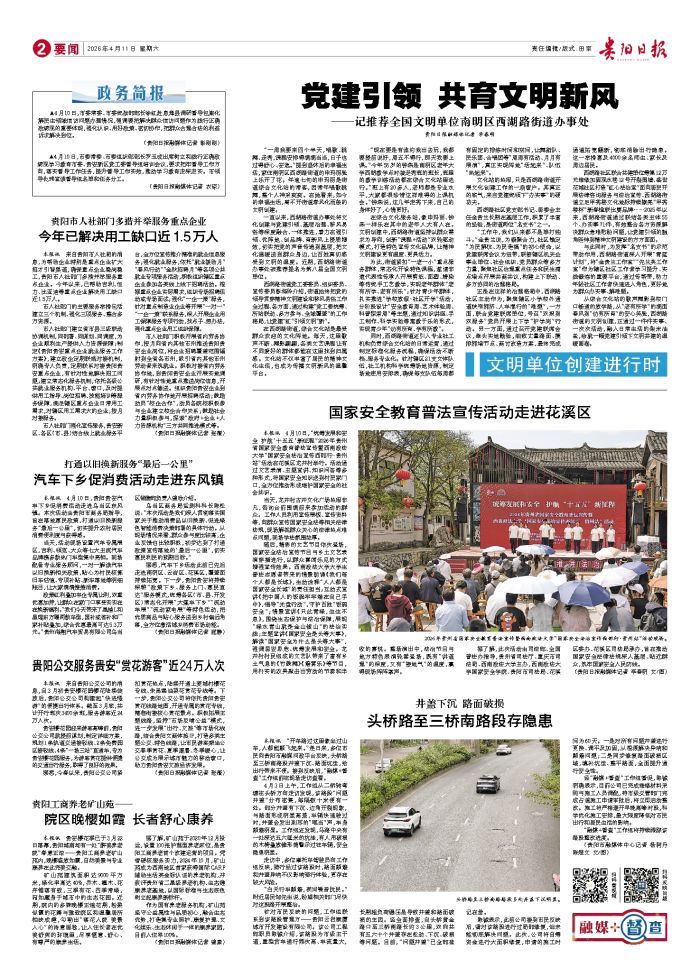 本报讯 4月10日,“统筹发展和安全 护航‘十五五’新征程”2026年贵州省国家安全教育普法宣传暨西南政法大学“国家安全法治宣传西部行·贵州站”活动在花溪区龙井村举行。活动通过文艺表演、主题
