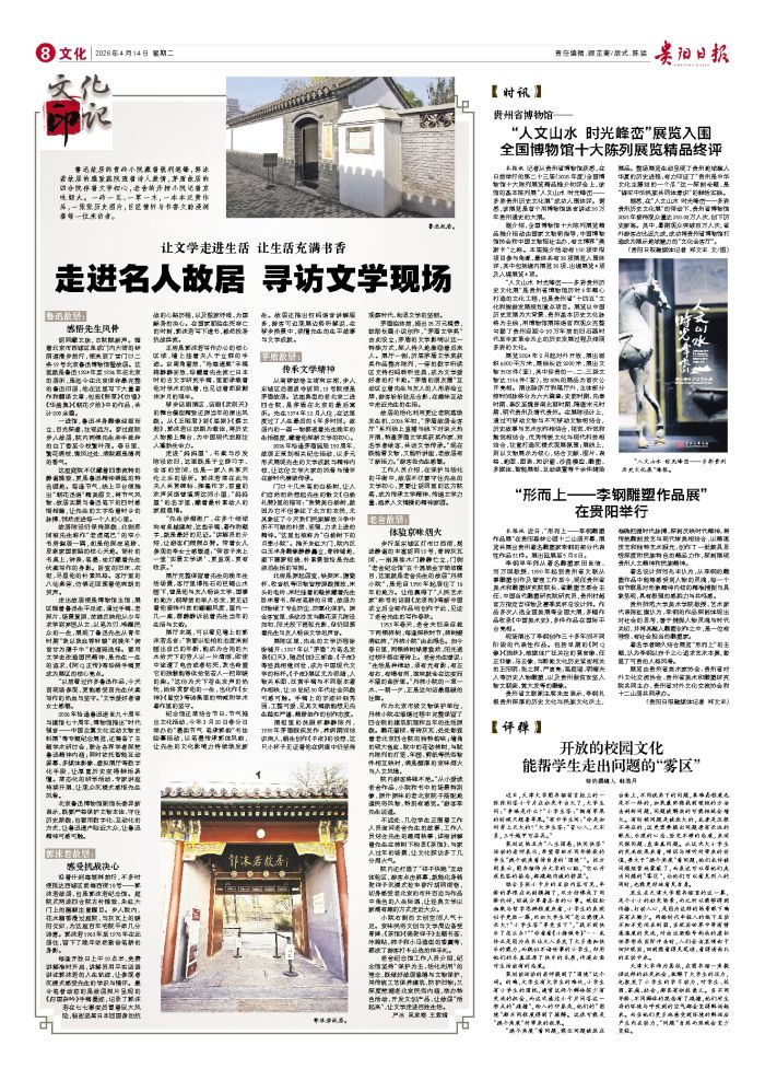 鲁迅故居的青砖小院藏着锐利笔锋,郭沫若故居的雅致庭院透着诗人激情,茅盾故居的四合院存着文学初心,老舍的丹柿小院记着京味烟火。一砖一瓦、一草一木,一本本泛黄作品,一张张历史图片,巨匠情怀与书香文
