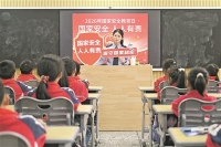 第十一个全民国家安全教育日到来,各地开展形式多样的宣传活动,增强全民对总体国家安全观的认识,共筑国家安全防线。 图为4月14日,在开阳县第一小学,民警给学生讲解国家安全知识。 新华