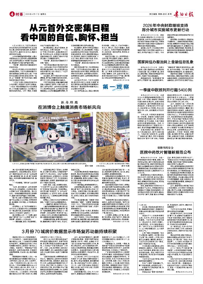 新华社北京4月16日电 记者16日从中国国家铁路集团有限公司获悉,今年一季度,铁路部门持续深化国内国际协调合作,加强中欧班列运输组织,提升跨境物流服务品质和效率,中欧班列累计开行5460列,