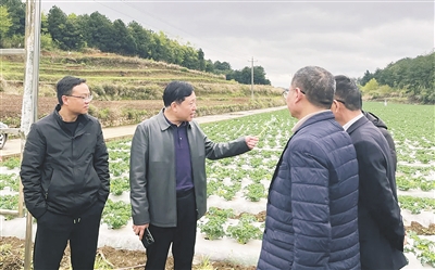 李忠祥(左二)一行前往有机蔬菜试点基地开展实地考察。