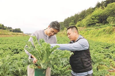 有机蔬菜试点基地的羽衣甘蓝实现丰收。