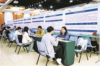 招聘活动中,青年学子与贵阳贵安用人单位交流沟通。