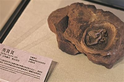 展出的英贝贝鸭嘴龙类胚胎化石。 新华/传真