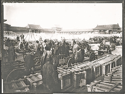 抗战期间,第三批南迁文物装车。