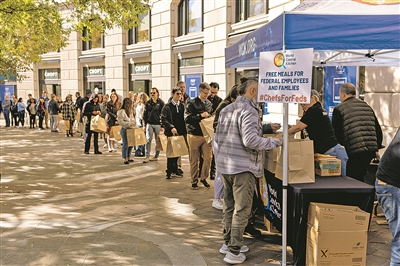 工作人员透露,主办方还与华盛顿市区的餐厅合作,从餐厅购买午餐发给联邦雇员,这样也可同时支持这些挣扎中的餐饮企业。受联邦政府裁员和持续“停摆”影响,当地餐厅生意大受冲击。位于马萨诸塞大道东北的一家咖啡店老板阿克萨娜·特兰日前对当地媒体表示,“停摆”期间销售额下降了15%至20%。
