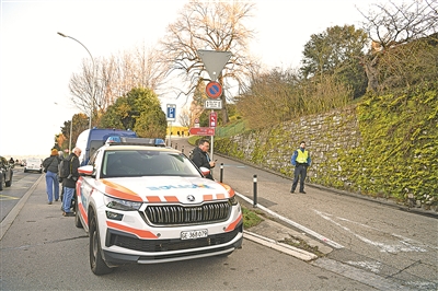 2月26日在瑞士日内瓦阿曼驻日内瓦外交代表机构附近拍摄的警车。 新华/传真
